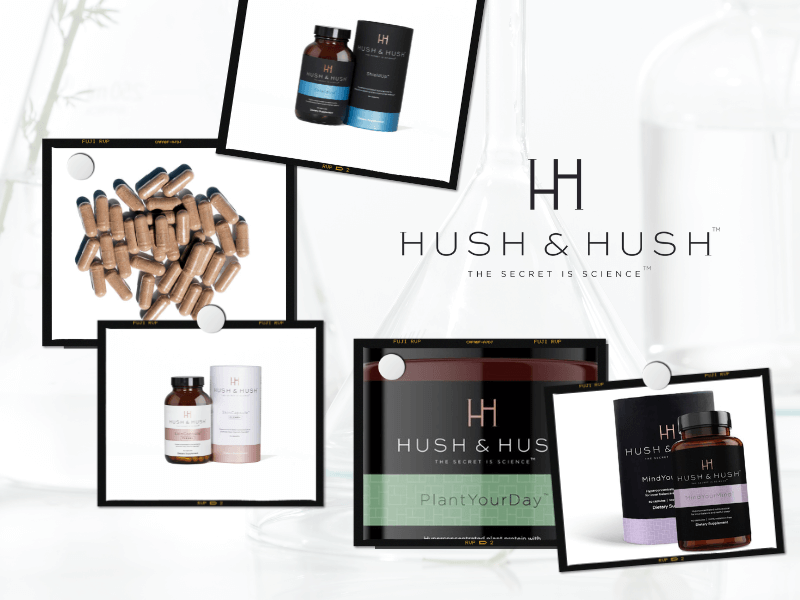 Im Sortiment der Marke Hush&Hush gibt es vier Produkte. Dabei handelt es sich um Nahrungsergänzungsmittel, die zu unterschiedlichen Zwecken eingenommen werden können. Ob Superfood als Frühstücksersatz, zur Linderung von Alterungsanzeigen, zur Verbesserung der Haare oder zur Entlastung von Gedanken, Seele und Körper, hier ist für individuelle Bedürfnisse ein perfektes Pendant zum Einnehmen dabei.